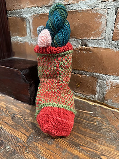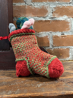 Looking for a simple small stocking pattern? Look no further….designed for sport weight yarn, this little guy can really be made in any weight yarn if you adjust for a needle size appropriate to your yarn weight. It will be larger or smaller, depending on gauge. You can also easily make it larger by adding some stitches to the width or adjusting the length of the leg or foot sections … but will let you do that math as you see fit.