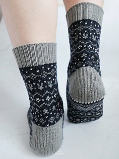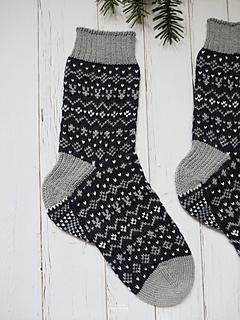 These socks are worked toe-up, featuring a heel flap and a sole gusset that resembles a Christmas tree.