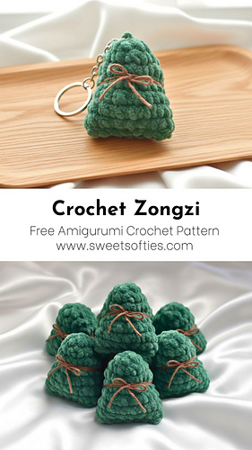 Free pattern viewable at: https://www.sweetsofties.com/2025/11/little-zongzi.html