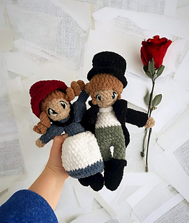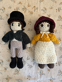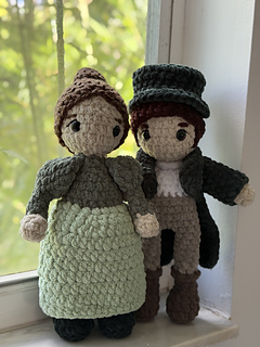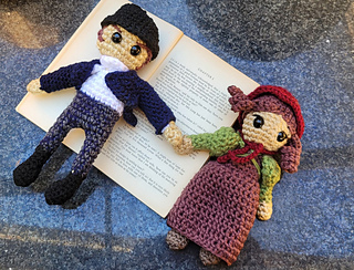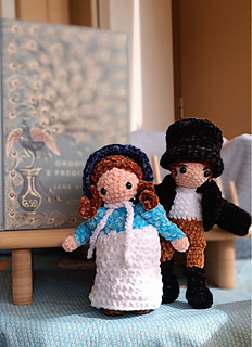 Allow yourself to be whisked away into the world of Lizzie and Darcy as you crochet this timeless literary couple! Included in this pattern are mods for Emma and Mr. Knightley and Jane Eyre and Mr. Rochester!