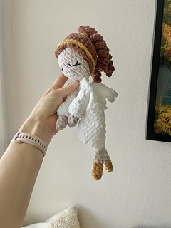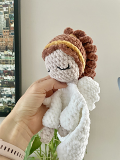Bring a touch of heavenly comfort to your crochet projects with Lizzy, the Angel Lovey! This soft, cuddly angel security blanket—made with beige, white, golden yellow, and brown yarn for her hair—is perfect for Christmas gifts, baptisms, baby showers, first communions, or any special occasion that calls for a meaningful handmade keepsake.
