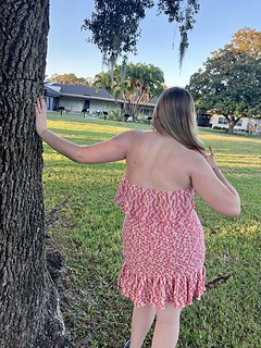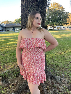 Get the crochet pattern to make the Lock It Down Dress! This fun and flirty, made to measure strapless dress.