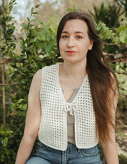 This piece was named after my grandmother Lois, who taught me how to crochet. I wanted to use a lacey stitch that is both elegant and fun, and the arrowhead stitch does just that! The result is a top that is as enjoyable to make as it is to wear.