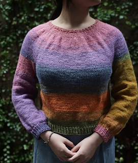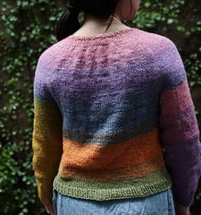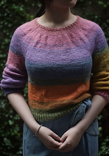 Lola top / pullover is a simple top down seamless construction pattern. In this pattern we have included a plain version and also a textured motif version. We started off with neckline increase that is split into 5 section to form that round yoke for the upper body. You can easily add a few available option textured motif , to the neutral round section of the yoke , lower body and also sleeve area . Short row is work after the yoke is done, to give height for the back body. Then we separate the sleeves from the body. The whole body is done first and lastly the sleeves are work in round. Lola is design with 2 body length option and 2 sleeve length option. It’s the perfect pattern for beginner and advance knitter that want a quick and simple finished sweater. This pattern is best for any long gradation / ombre dyed yarn to feature the beautiful colour from the yarn itself. But you can also keep it simple with any solid or semisolid dyed yarn. We hope you enjoy knitting Lola.