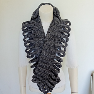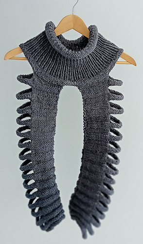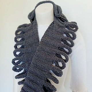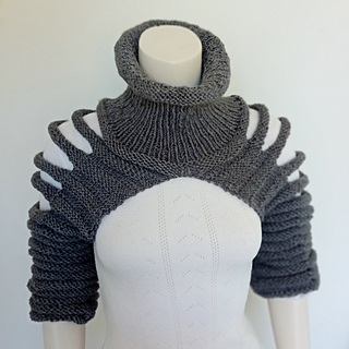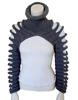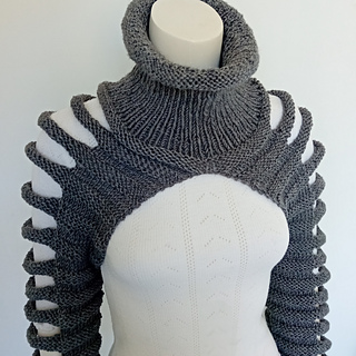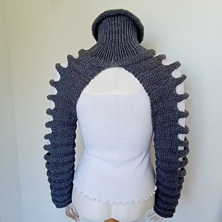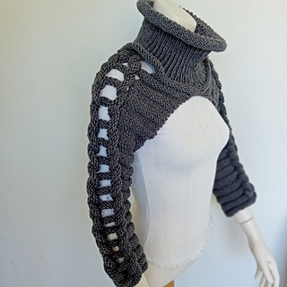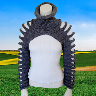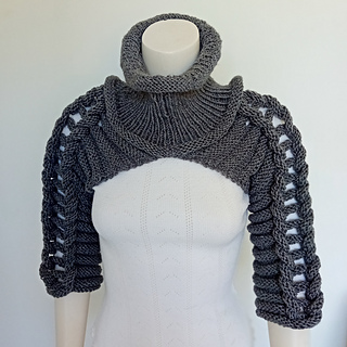This modern, beginner-friendly bolero combines English rib with fun loop stitch details for a look that’s simple but eye-catching. It’s worked from the collar down, then split into left and right