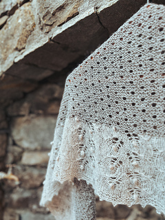 Lórien is a beautiful crescent shawl, worked in one piece, top-down. The body of the shawl is knit with fingering weight yarn in a simple garter stitch and eyelet pattern, followed by a lace part with a beautiful, botanical motif worked in a lace weight yarn. The finished shawl is a magnificent and timeless piece: delicate, light and airy. It is a perfect accessory for spring and summer days.