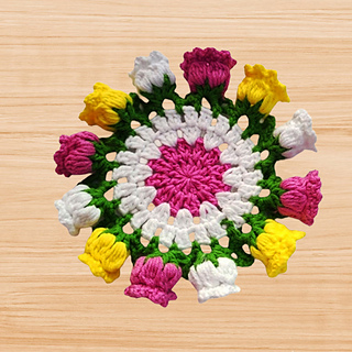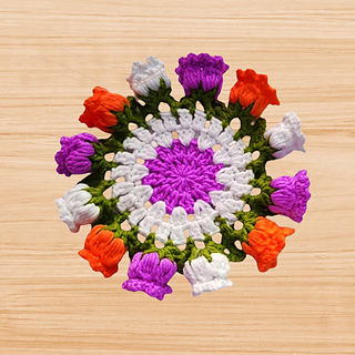 The Crochet Lotus Flowers Coaster pattern creates a beautiful, floral-inspired design — perfect for decorating your table, gifting, or selling at craft markets. The motif is worked in the round from the center outward, forming elegant layered petals.
