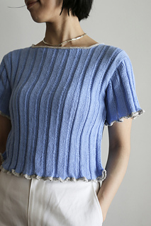 Lou Blouse (ルゥブラウス)は, リブ編みのシンプルで汎用性の高いブラウスです. リブ編みの生地が優しく体にフィットし, 裾と袖口のフリルが女性らしさを添えます.