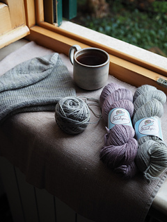 Suggested Yarn: SnailYarn Baby Alpaca + Merino DK (225m / 100g), shown in colorway “Nebbia”.