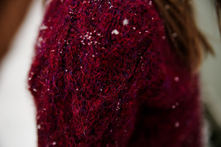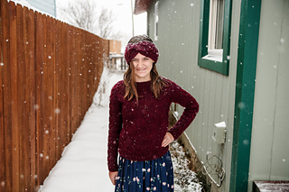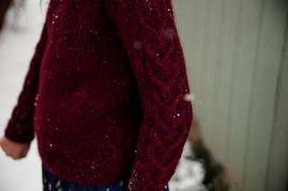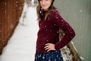 This sweater was designed as a Christmas sweater for my 13-year-old daughter and worn to a church Christmas concert, styled with a black velvet skirt.