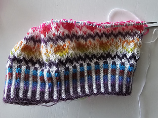 Rather than buy more yarn, I have used lots (and lots!) of colours from my stash - the hearts in each band have a light, medium and dark shade to add dimension. Even the green zigzags feature two shades!