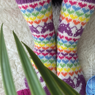 More is more! Sometimes you just want to go all in, all the magic, all the colours, all the cuteness, all the feels! On those days the Love Rainbow Unicorn Socks are your perfect accessory! You can also knit these socks in some more somber colours and without the unicorn horns and voila! they are now Love Horses Socks! Perfect to wear to the stable to keep your feet warm on cold winter days!