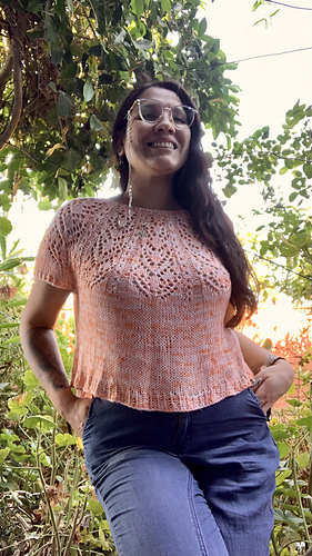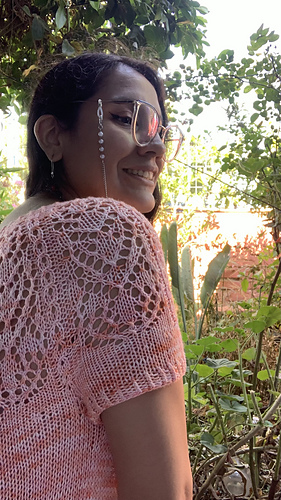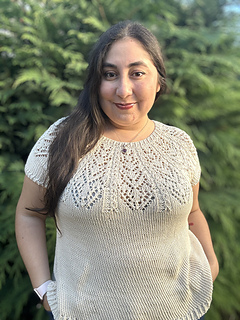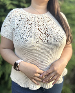 Lovely Top trae frescura al verano. Su construcción top down evita las uniones, dando como resultado una prenda cómoda y con un toque elegante.