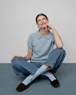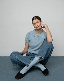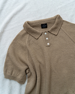 Læsø Polo is worked top down and the yoke is shaped with raglan increases. After the yoke the work is divided and body and sleeves are worked separately in the round. Finally, the collar and button bands are added.