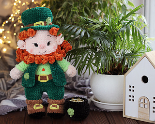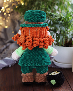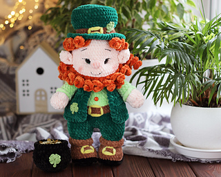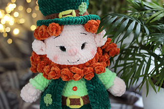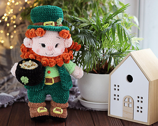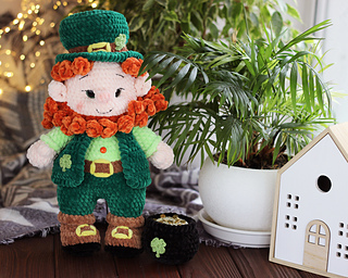 Lucky Leprechaun is a crochet amigurumi doll inspired by Irish folklore and symbols of luck
