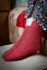 The Lucrezia socks are knitted from the top down and commence with an elegant twisted rib cuff which neatly travels into the all-over pattern for the leg and foot.
