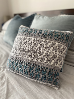 Cushion is made using Overlay Mosaic Crochet Technique. Mosaic crochet in the round allows you to create the cushion without using border stitches. You are working continuously around and never have to cut your yarn, which means there won’t be no tail ends to weave in!!!
