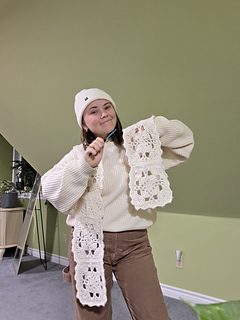 This scarf is a beginner friendly crochet project that will leave you feeling satisfied and impressed by how far 1 skein and 1 type of granny square will get you! ‘Lumi’ means snow in Estonian and the first snow has always felt extra magical to me! Cozy with none of the weight, this airy scarf will keep you warm and stylish throughout the winter.