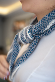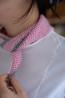 The pattern of Lumin Scales resembles shimmering scales, which is how it got its name. The design is created by holding different colored yarns in the left and right hands, similar to stranded colorwork, resulting in a fabric that has its own unique charm on both the right and wrong sides. That’s why this pattern was developed into a scarf—it can be worn on either side. Lumin Scales can be knitted using many different types of yarn, which makes for a highly creative and versatile scarf design.