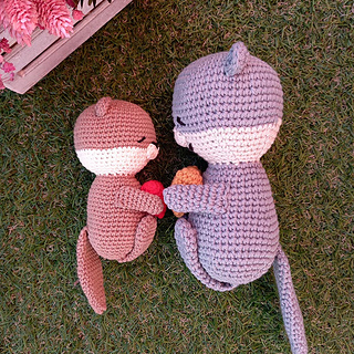 Lumpi está tejida con algodón DK y ganchillo de 3mm, mide unos 16cm de largo.
