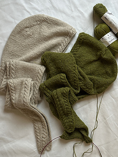 Luna Hood est une capuche tricotée sans couture, travaillée de haut en bas, inspirée par la courbe douce d’un croissant de lune. Des torsades discrètes, une bordure Distitch nette et des rangs raccourcis allemands créent une pièce à la fois structurée et confortable, idéale pour les journées fraîches.