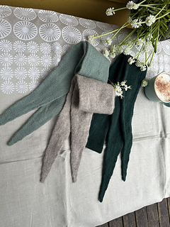 Luna skjerf er oppskrift på et klassisk, smalt skjerf. Inspirert av brettede halstørkler. Kort versjon er som et tørkle til å ha om halsen, som pannebånd eller «hårbånd». Lang versjon går to ganger om halsen. Kan henge ned eller knytes. Kan også brukes rundt hodet.