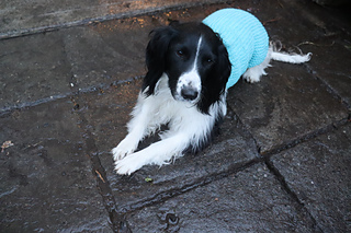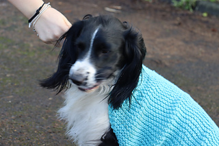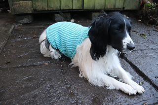 The pattern is written in 5 sizes for lengths of dog, from collar to base of tail. It fits dogs of 20 (30, 40) 50, 60) cm length, and is adjustable for dogs of any width.