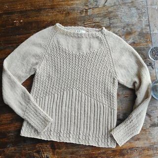 Der Luneau Pullover wird nahtlos in Runden von oben, mit einem tieferen Halsausschnitt gestrickt. Die Passform ergibt sich aus dem Muster selbst, wobei seitliche Zu- oder Abnahmen entfallen.