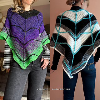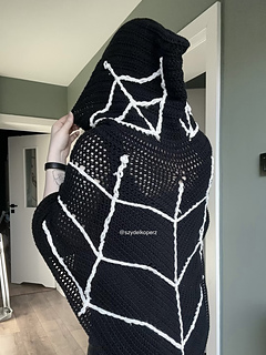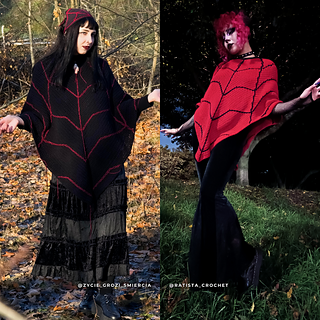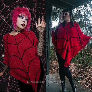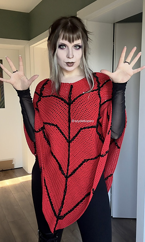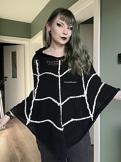 Lydia’s poncho is a top-down crochet pattern featuring a spiderweb design with a subtle gothic feel. It’s made for those who consider themselves a little strange and unusual!