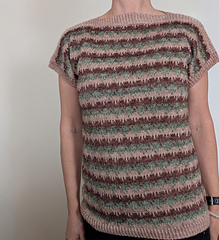Das Modell wurde in Größe B gestrickt – Umfang des fertigen Shirts 98cm für einen Brustumfang von 86cm.