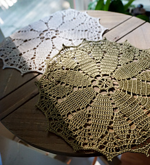 For this simple pattern that is great for beginners ( common and straightforward stitches,) I used Lydia size 10 yarn with a 1.6 mm hook. As long as the pattern is followed correctly you would be just fine using a different sized yarn and hook! My finished piece measured 10.5 inches in diameter, after being blocked which is very important. This pattern is $3 on my Etsy: East End Hookers