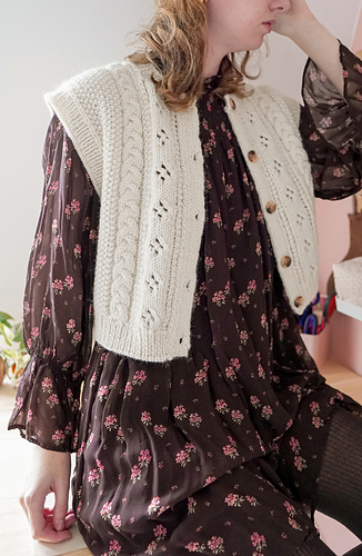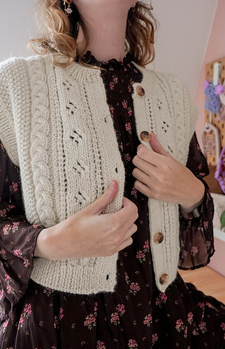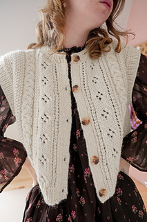 This pattern comes with 2 files: 1 for the cardigan version and 1 for the vest version. The vest version has not been test knitted and features subtle modifications from the cardigan.