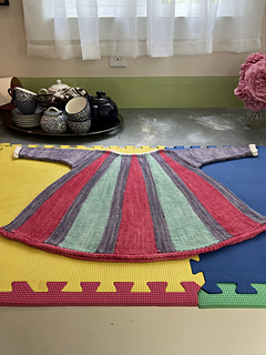 This tiny dress is designed to be knit flat, in one piece.