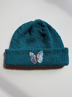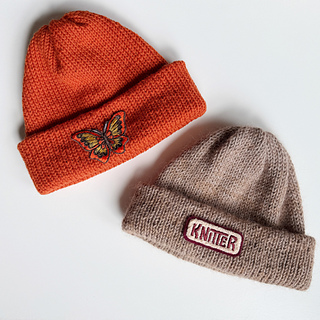 A simple stockinette beanie with a fold over brim, perfect for your favorite patch!