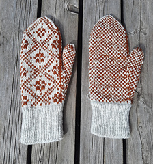Mae är mönsterstickade vantar.