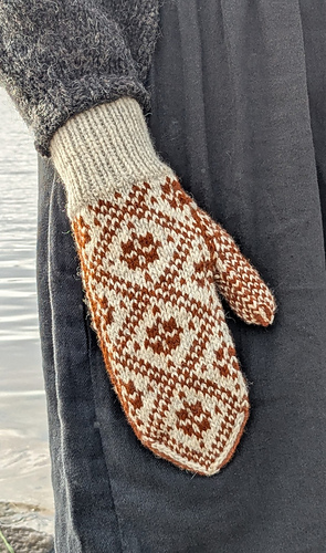 Mae is a mitten made in stranded knitting