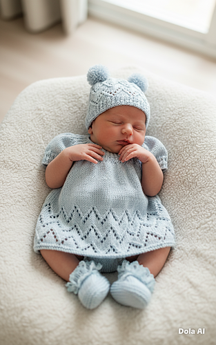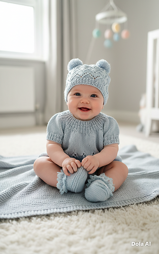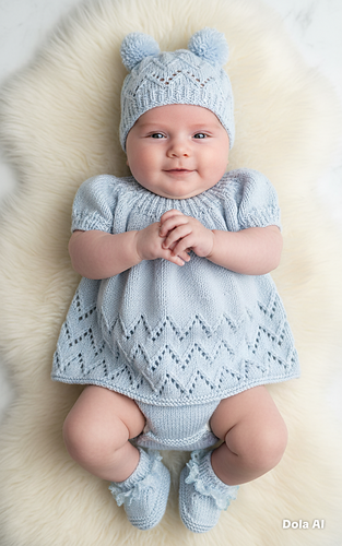 This pattern provides the instructions to knit a dress set consisting of 4 pieces set, with a choice of making shorts or knickers. a great summer pattern the dress just slips over the babies head and does not have any buttons, making it nice and comfy to wear.