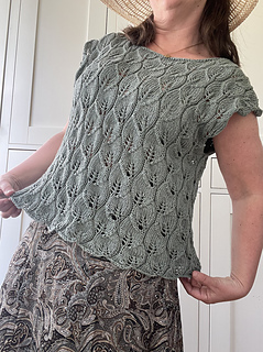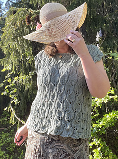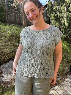 A lovely, light top where the beautiful leaf pattern plays the main role. Knit bottom up, in the round and then divided at the armholes and worked flat.