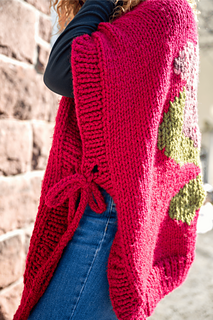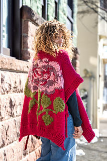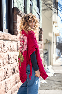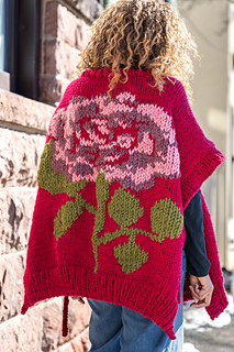 The Magician’s Poncho, Part of the Maker’s Card Collection with Lion Brand Yarn, is a dramatic, oversized wrap inspired by the Magician tarot card, a symbol of power, intention, and transformation. Knit flat in rich stockinette stitch with ribbed edges, this bold poncho features a stunning rose motif on the back worked in duplicate stitch embroidery after the knitting is complete. Tie closures and generous drape make it as versatile as it is eye-catching. This is the statement piece your wardrobe has been waiting for.
