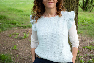 Il pattern contiene video tutorial che vi aiuteranno alla realizzazione della maglia, ed un video per realizzare un volant a ferri intorno alla circonferenza spalle, se ne vorrete realizzare una versione gilet.