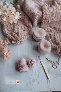 del capo ho utilizzato filati preziosi e leggeri: per il corpo ho unito una lana merino di spessore medio (200mt circa per 50 gr) ad un filo sottilissimo di kidsilk. Le maniche le ho lavorate unendo un filo di kidsilk ad un filo sottilissimo di merino extrafine (750 mt per 50 gr) che lavorati assieme danno un risultato soffice ma allo stesso tempo pieno e voluminoso al punto. Il risultato è un capo confortevole, caldissimo e leggerissimo.