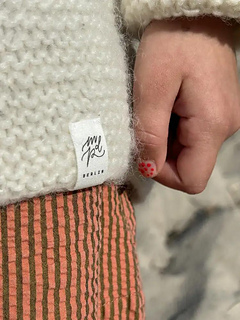 Size guide: The Maiah’s Raglan Jacket Junior is supposed to be worn with an amount of positive ease of approx. 15-17 cm / 6″-6,75″. You can take the child’s chest circumference to determine which size to knit, i.e. for a chest circumference of 59 cm / 23,25″, you should choose to knit size 4-5 years which has a finished bust circumference of 75,5 cm / 30,75″, this would give your garment 16,5 cm / 6,5″ of positive ease.
