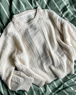 The Maitland Sweater is an intermediate drop shoulder sweater, with an all over textured design. This isn’t a good starter sweater, unless you’re adventurous, in which case there are plenty of videos and linked resources to help you learn! The sweater is knit from the top down; first the back is knit, stitches are picked up to create the front panels and shape the neckline, then the front and the back are joined in the round. Finally, stitches are picked up to create the sleeves. The pattern is only provided in charts - it is not written out.