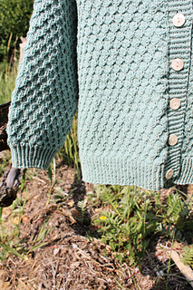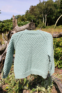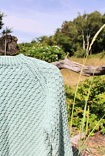 Majke cardigan is worked from the bottom edge and up with a nice textured allover pattern. The sweater has long sleeves with raglan yoke and sleeve construction and traditional rib edges. The pattern is made for at yarn with a gauge of 40 stitches per 10 centimeters (stockinette stitch) i.e. a yardage of approximate 200 meters per 50 grams.