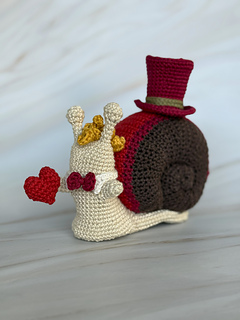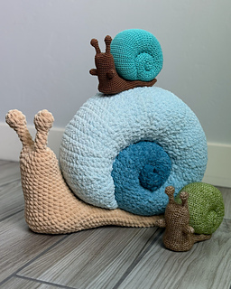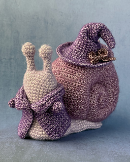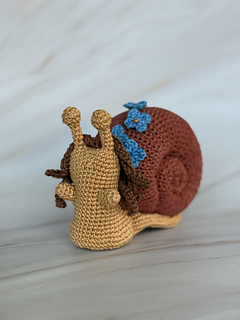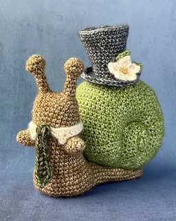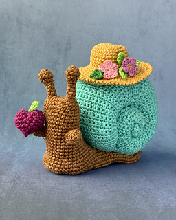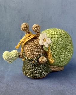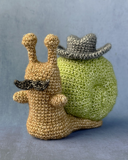 I imagine this snail as a little character that cheers you on while crocheting and celebrates taking your time, enjoying the process and making the progress at a pace that works for you. The design was inspired by Team Snail during the Festival of Lights CAL and the snail artwork done by CherriFire. Since I want this snail to be your own character, the pattern includes a lot of accessories and ways to personalize the pattern.