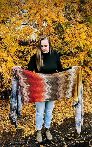 Maker’s Cove is a garter stitch rectangle wrap featuring a meditative chevron rhythm that runs through ripples of color as you open a new mini skein package each day in December. Its generous size and versatile shape make it a wardrobe staple that can ward off the coldest of winter chills.
