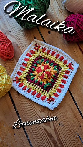 Here is the next one of my 6“ series for you. All squares are named and inspired by some great female musicians. While designing the squares, I listened to their music. For me, music is connecting people around the world just like crocheting. You just can understand it everywhere. That’s what I really love about both of them. And if you like, you can hear their songs while working the squares. This time I listened to the great Miriam Makaba and one of my favorite songs of her, Malaika.