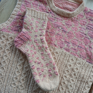 This pattern is part of the Savannah collection, which includes two sock patterns and a sleeveless sweater.