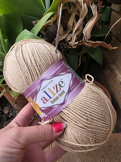I used hook 3 mm and Alize Cotton Gold and Anette Erikson Jeans. I recommend any half cotton or cotton yarn.