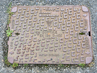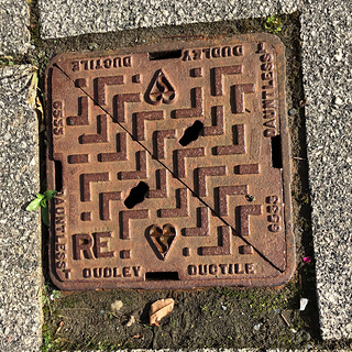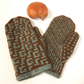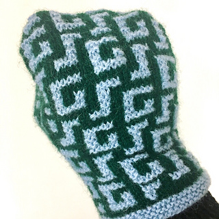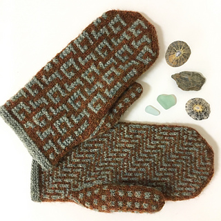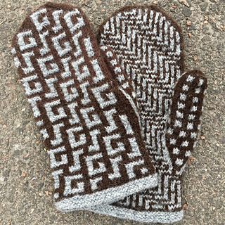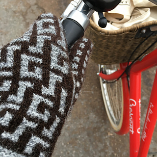 This pattern is based on manhole covers that I photographed during Shetland Wool Week 2017. The back of the hand, the palm, and the thumb all have patterns based on different manholes. The angular top of the mitten matches the geometrical patterns, and the thumb gusset makes for a better fit around the hand.